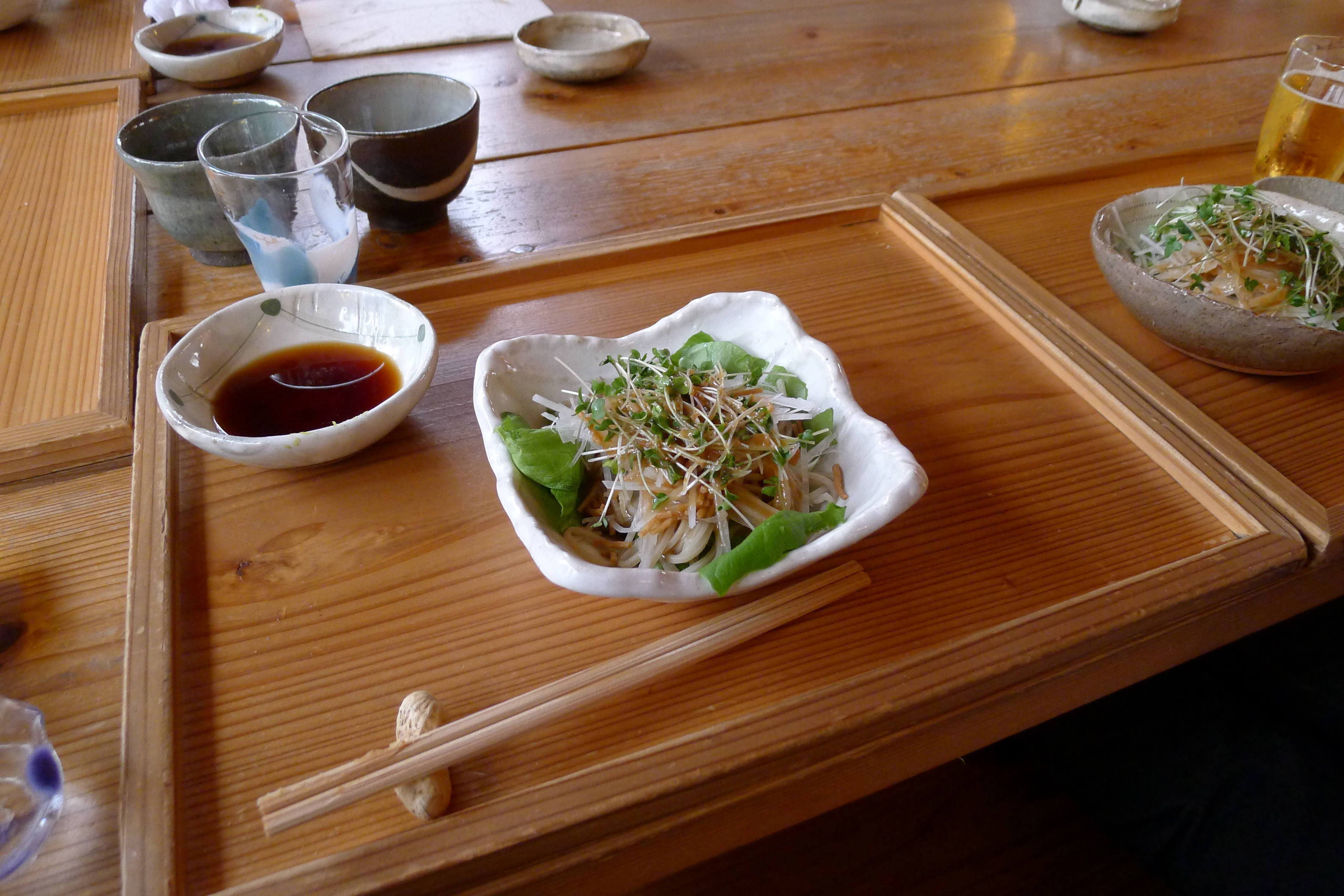 ふじ花の蕎麦2 昨日は友達のお誘いで、「ふじ花」さんでお酒と蕎麦を楽しみました。夕暮れちょっとまだ明るい時間からで最高でした。気のおけない仲間で、おいしい料理とお酒、いいもんです。 蕎麦味噌、お酒が進みます。 ごま豆腐、なめらか、いいお出汁だし。 蕎麦サラダ、この食べ方ははじめてです。 てんぷら。おいっしい揚げたてっす。 やっぱり蕎麦最高。堪能しました。 ほかに「蕎麦がき」や「蕎麦の実のお茶漬け」やデザートの「蕎麦のアイスクリーム」もありました。食べ物の写真ですのでフラッシュはつかいません。日が暮れると部屋が暗くなります。そうするとシャッター時間が長くなりますので手ブレがおきます。そんで酔っぱらうとますますブレます。ごちそうさまでした。