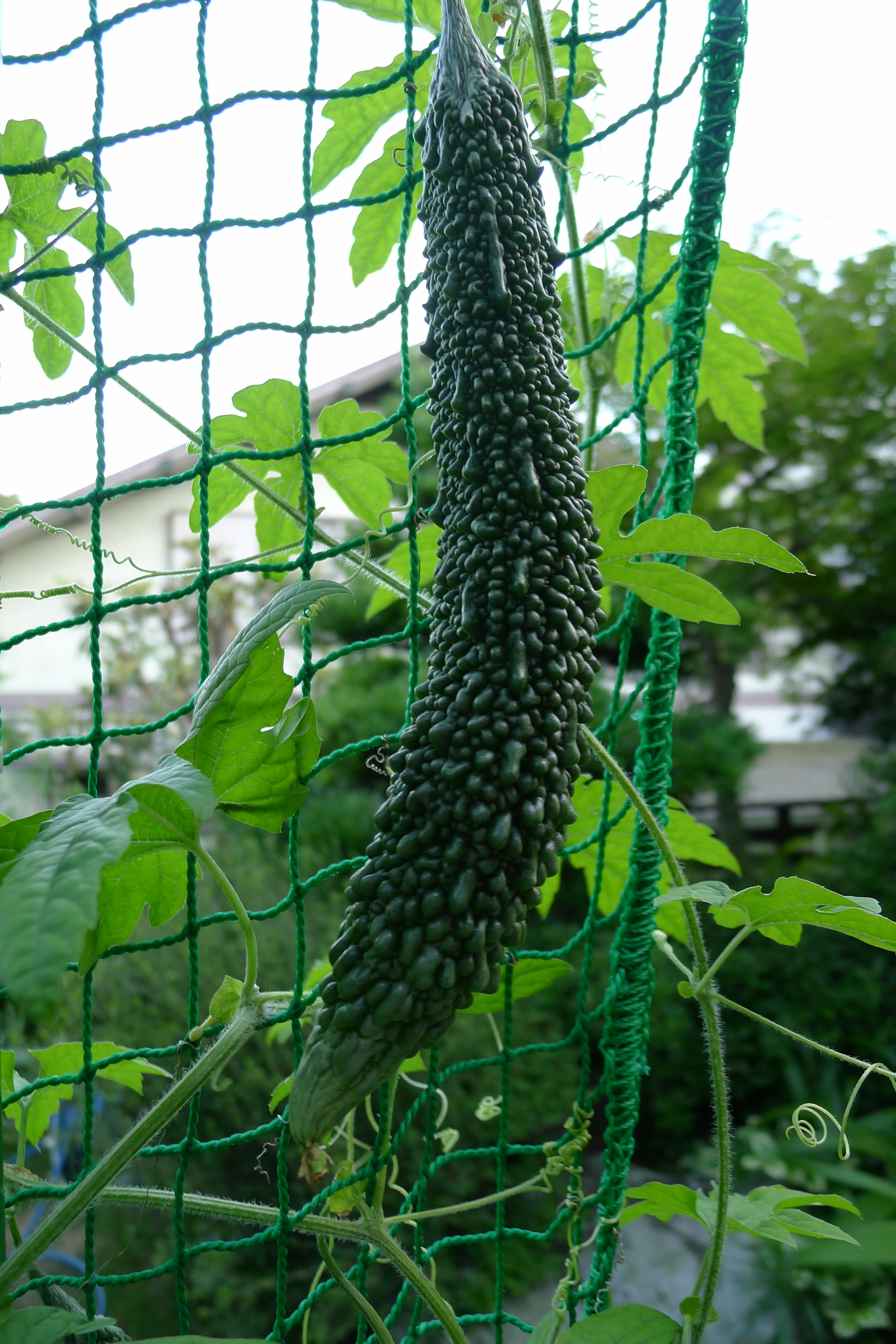 いよいよゴーヤです。去年のと比べて実つきがいいです。植えた場所は0.5mほど北側に変わっています。カーテン効果も十分ですが、去年より葉が少ない気がします。さっそくチャンプルーで食べましたが大変おいしかったです。