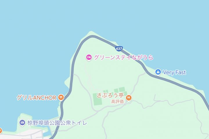 想像ですが宿泊は「グリーンステイながうら」かと思います。椋野と久賀の間にあります。