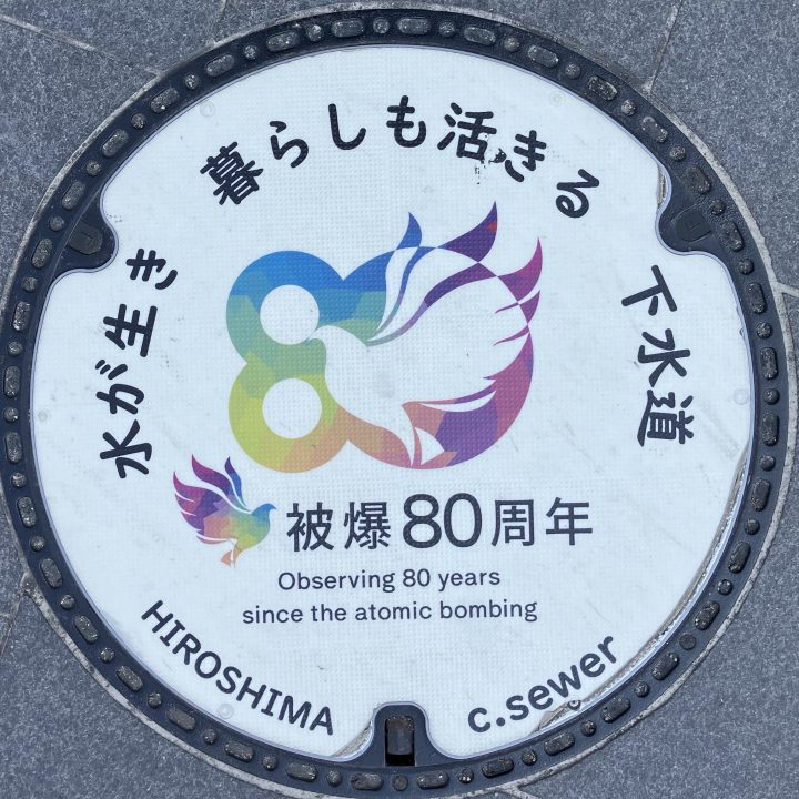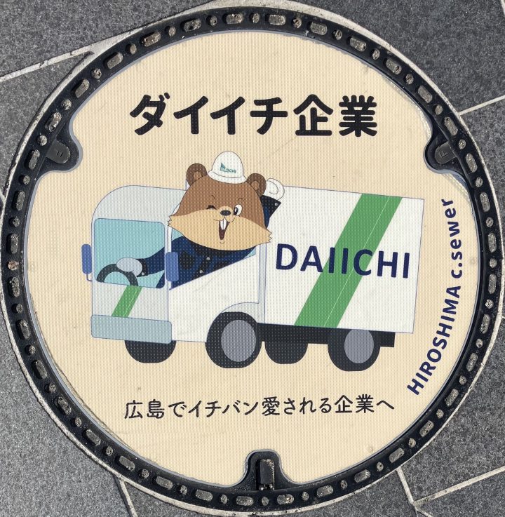 広島人孔 25 MCさんからいただきました。 「広島市八丁堀交差点近くで見かけました。企業宣伝のマンホールです。」 水道局。 水道局、スポンサー募集中かな。 産業廃棄物の会社らしいね。 地道人孔シリーズでした。