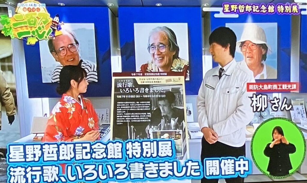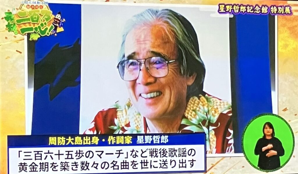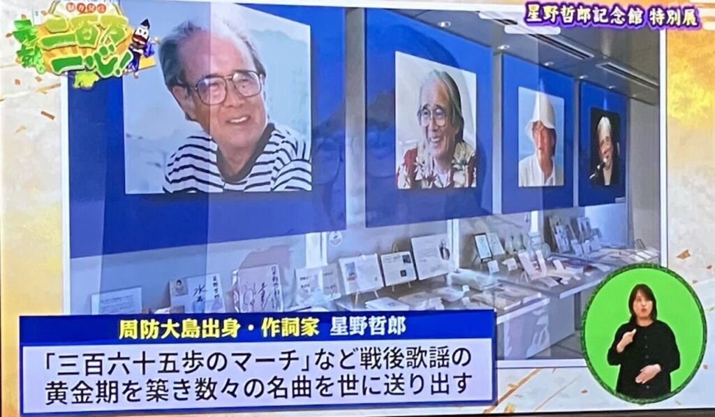 作詞家、星野哲郎さんはよく弟子の演歌歌手を連れて帰省されていました。昔国鉄大島航路でお見かけした事があります。